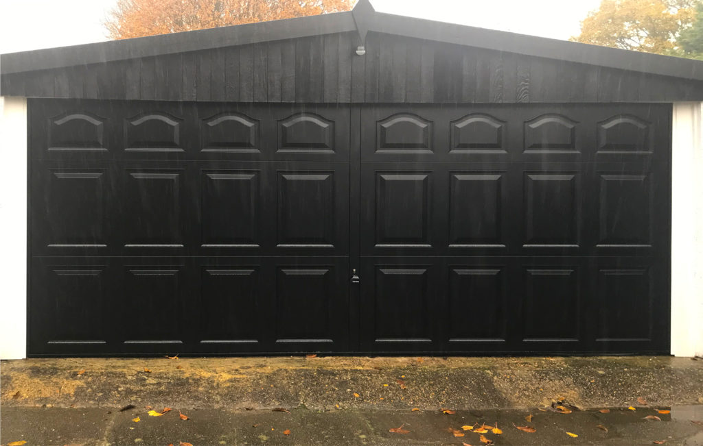Garador Cathedral Double Steel Up & Over Garage Doors Finished in Black