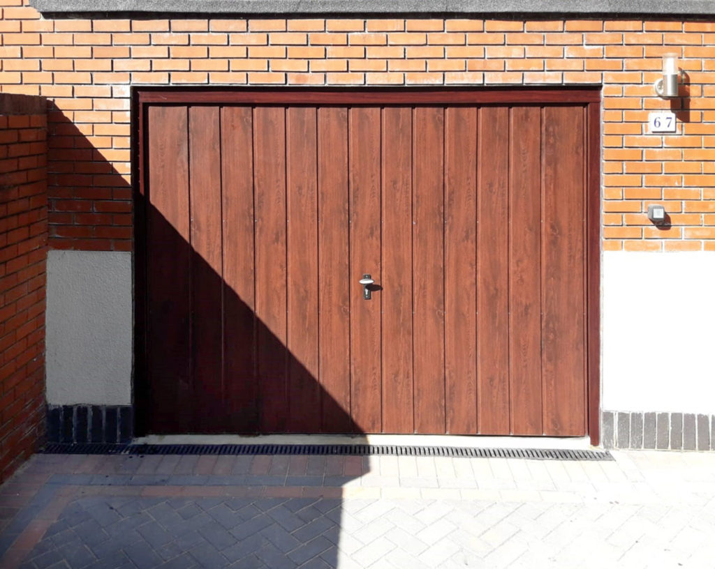 Fort Doors, Vertically Ribbed Up & Over Garage Door, Finished in Rosewood Decograin