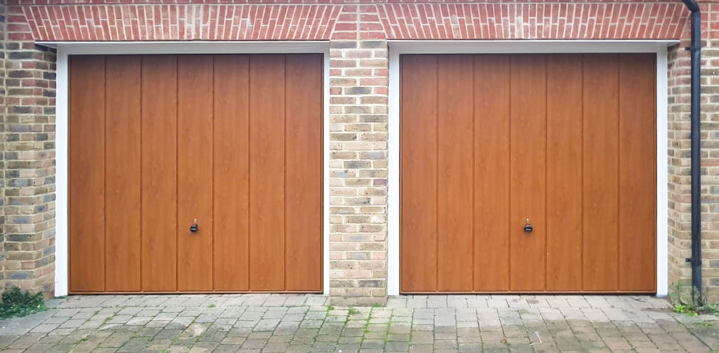 Hormann Vertical Decograin, Retractable Garage Doors in Golden Oak