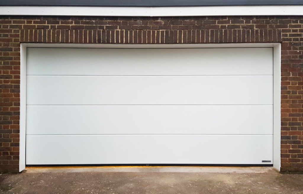 Hormann LPU42 L Ribbed, Sectional Garage Door in White Silkgrain