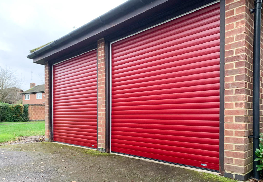 2x SeceuroGlide LT Roller Garage Doors Finished in Red & Installed in Binfield by Our New Malden Branch.