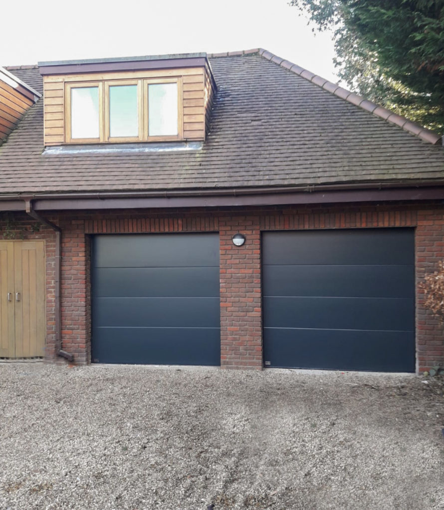 2x SWS Elite Automated Unribbed Sectional Garage Doors Finished in Anthracite Grey & Installed By Our New Malden Branch.