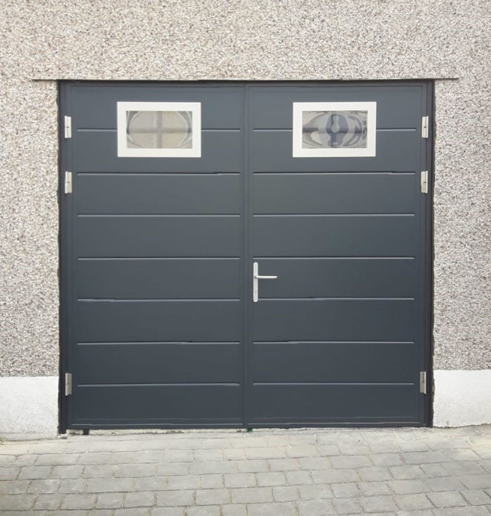 Ideal if you have obstructions inside your garage, limited headroom or if your garage is used for storage, side-hinged garage doors have seen a revival in recent years due to this benefit. However, it is important to consider the space of the garage where the doors open.