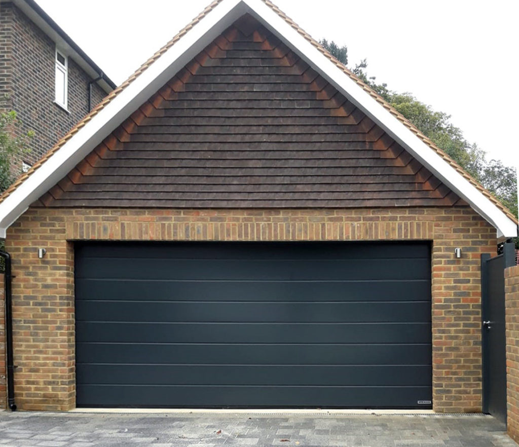 Hormann LPU42 Automatic Sectional Garage Door, finished in Anthracite grey, installed in Reigate by our Croydon branch.