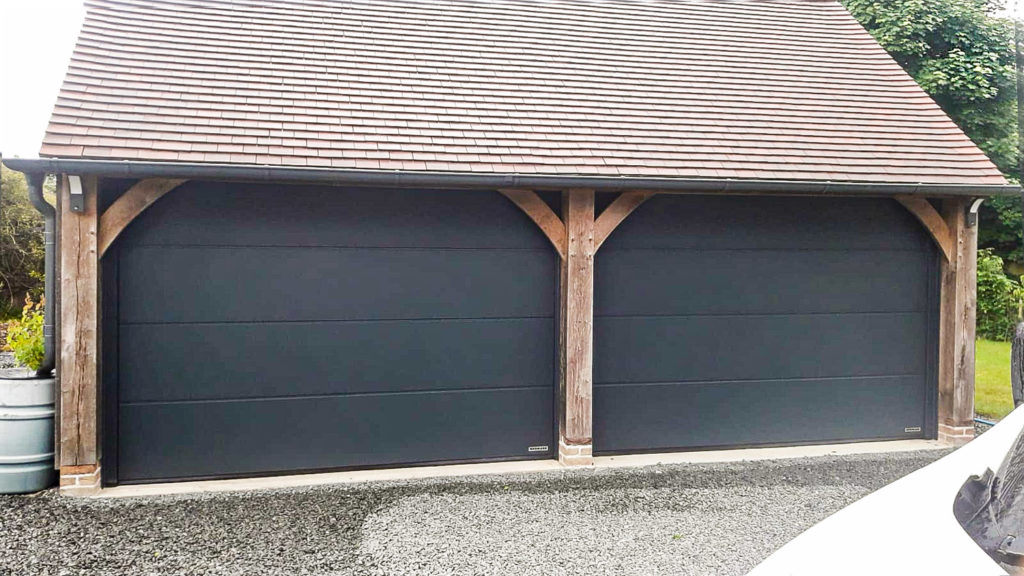 A pair of Hormann LPU42 L-Ribbed Insulated Steel Sectional Garage Doors in Anthracite Sandgrain installed in Chalfont St. Giles by our Watford Branch.