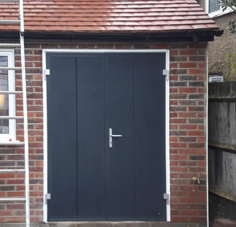 These Ryterna Side Hinged Doors came vertically ribbed and were finished in Anthracite Grey (RAL 7016). Ryterna construct side hinged doors using double skin steel sections filled with freon-free PU foam, as a result providing excellent thermal and acoustic insulation for your home. Ryterna side hinged doors combine traditional appearance and modern design.