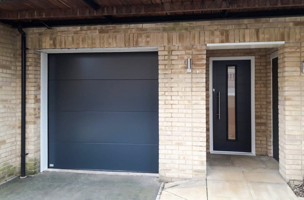 SWS Elite Insulated Sectional Garage Door & Truedor Kadinsky TR3B Entrance Door Finished in Anthracite Grey & Installed in Bexley By Our Sidcup Branch.