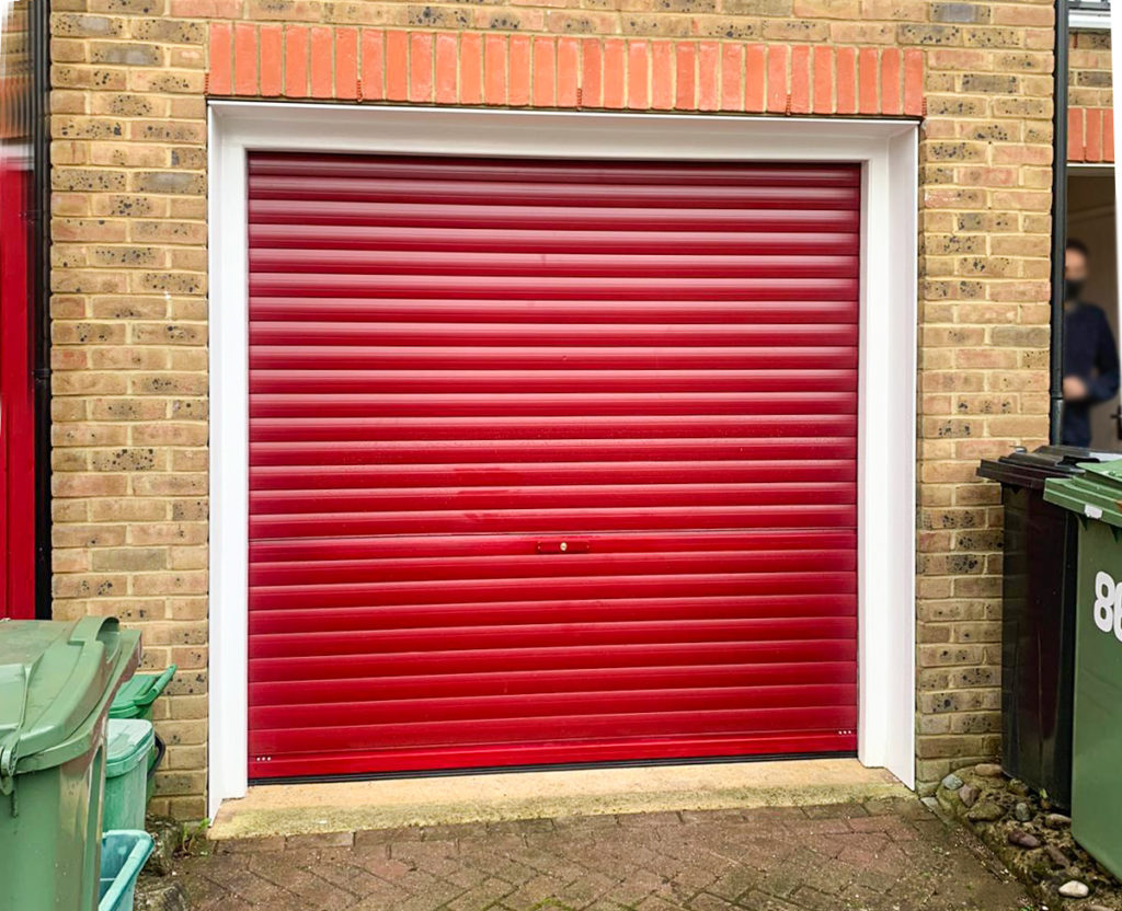 SWS SeceuroGlide Manual Roller Garage Door Finished in Red & Installed in Epsom by our New Malden Branch.