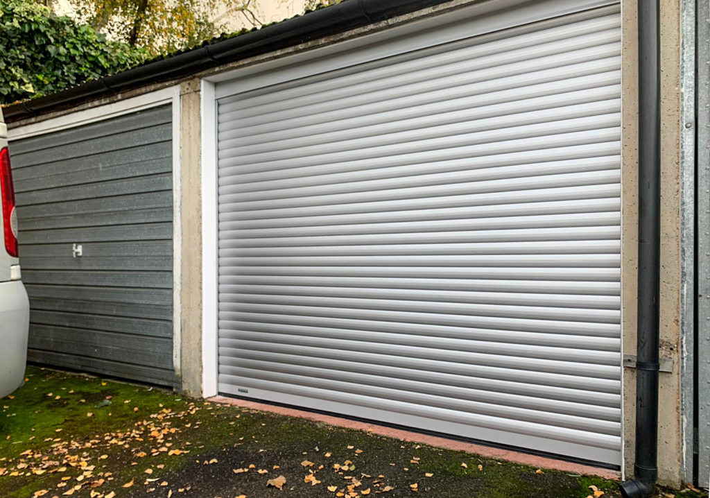 SWS SeceuroGlide Compact Roller Garage Door Finished in Silver & Installed By Our New Malden Branch.