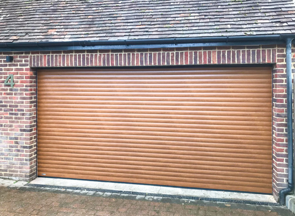 SWS SeceuroGlide Double Roller Garage Door Finished in Golden Oak & Installed in Ashtead by our New Malden Branch.