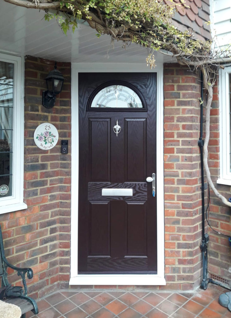 Truedor Monet TR1E Composite Entrance Door Finished in Rosewood Wood Grain & Installed in Swanley Village By Our Sidcup Branch.